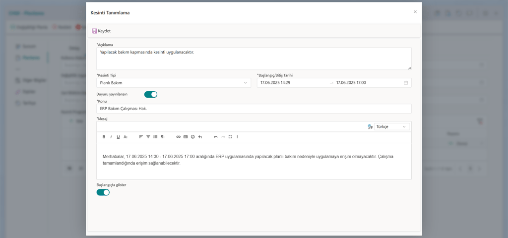 Değişiklik takviminizi tanımlayarak kesinti programları oluşturabilir ve esnek altyapı sayesinde yapılandırılabilir onay akışları kurgulayabilirsiniz.