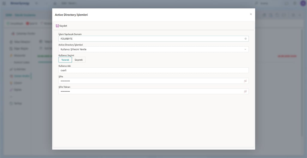 Active Directory entegrasyonu ile temel operasyonları oluşturulan talep üzerinden hızlı bir şekilde gerçekleştirebilir ve zaman kazanabilirsiniz.